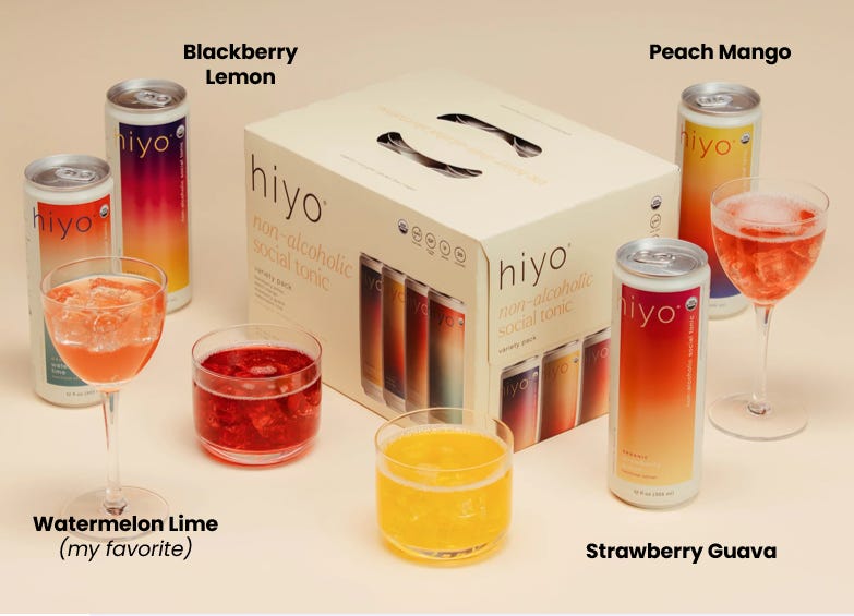 One I really like is Hiyo, a social tonic crafted with organic adaptogens, natural nootropics, and functional botanicals to elevate your mood and empower you to be truly happy in your own.